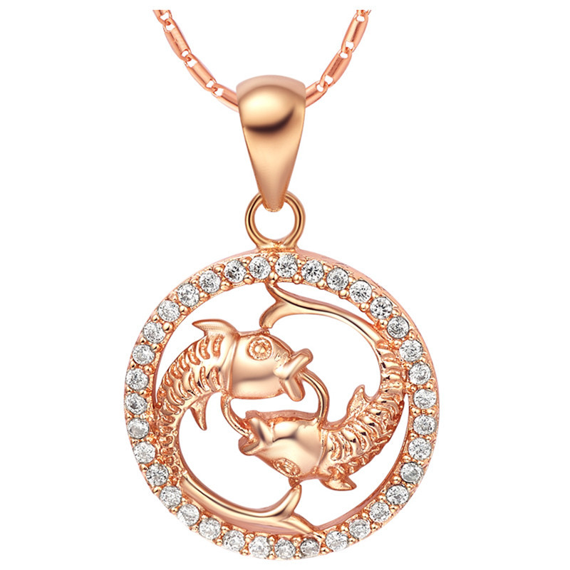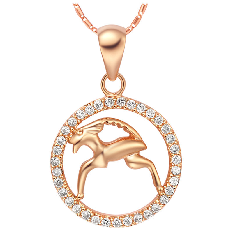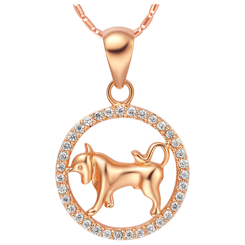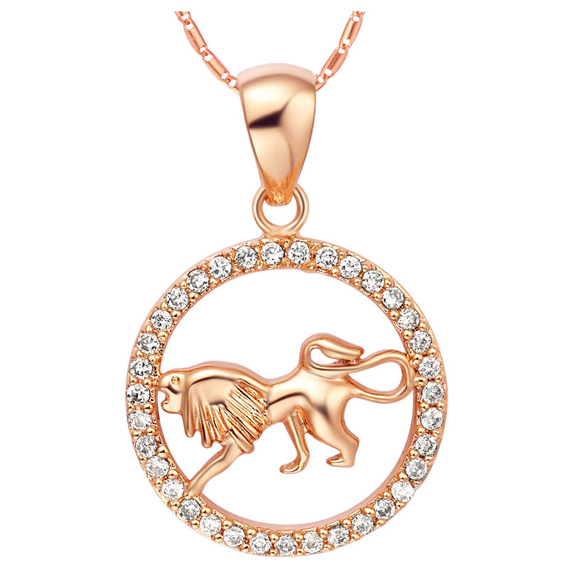 12 Constellations of the Zodiac Rhinestone Luck Necklace Chain Pendant