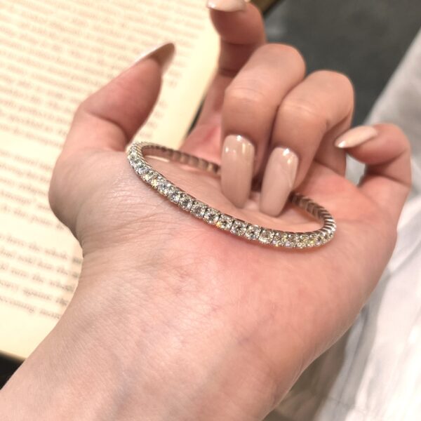 Crafted with stretchy elastic cord, it’s easy to slip on and off, making it a hassle-free accessory for daily wear, work, or casual outings. The full-moissanite detail ensures lasting brilliance, while the S925 sterling silver base offers durability and resistance to tarnish.