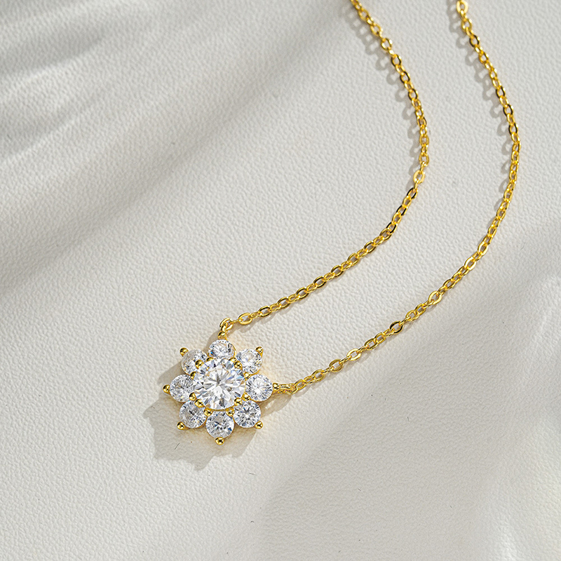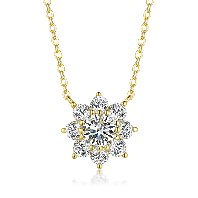 Laotlon Sunflower Moissanite Pendant14K Gold-Plated 925 Sterling Silver Chain