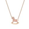 The centerpiece is a beautifully detailed carousel horse, frozen in a moment of joyful motion. Its form is brought to life by a full pavé of dazzling crystals in soft rose pink and brilliant clear tones. A single jet-black crystal forms its eye, adding a touch of playful personality. Suspended from a delicate pole, just as you remember, it is a tiny, perfect replica of a beloved memory.