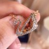 Graceful Red Diamond Swan Stud Earrings [Rose Gold]