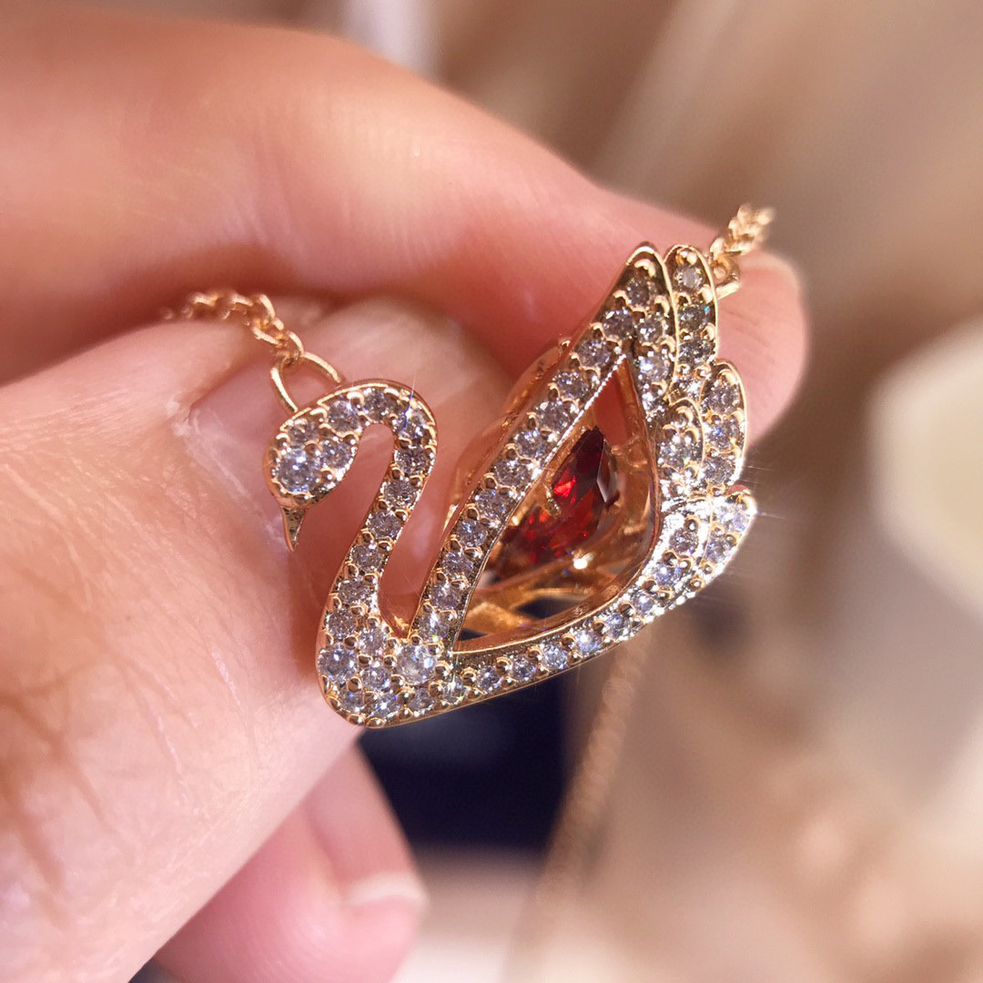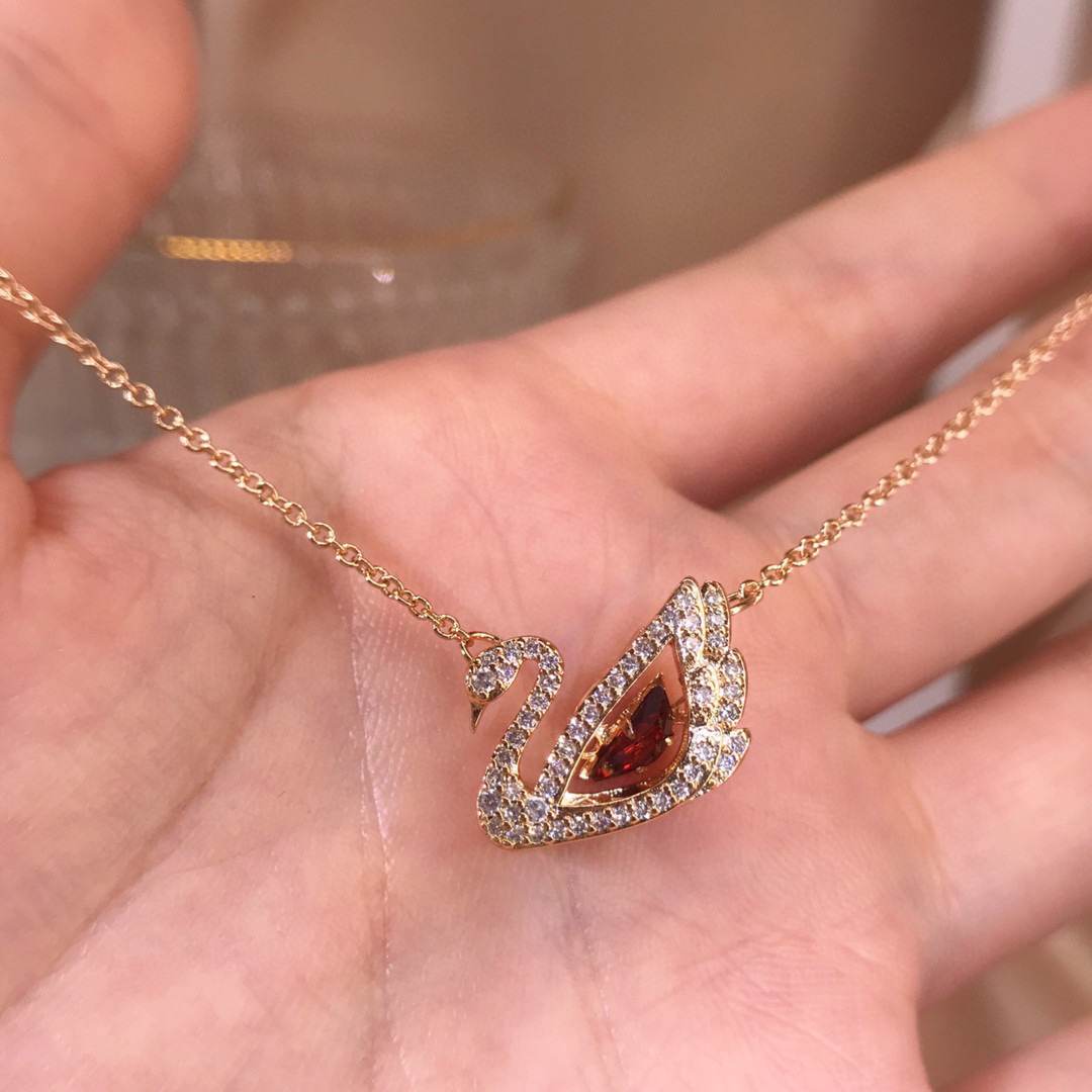 Elegant Red Diamond Swan Necklace [Rose Gold]
