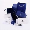 - Cool & Classic: Gleaming rhodium-plated finish with a sparkling clear or deep sapphire-blue center stone.