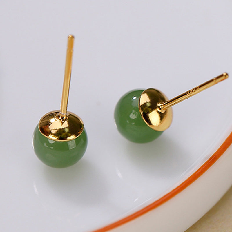 LAOTLON 925 Sterling Silver Round Cyan Jade Healing Calm Stud Earrings
