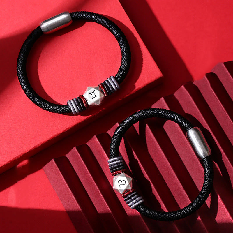 LAOTLON 999 Sterling Silver 12 Constellations of the Zodiac Blessing Handmade String Bracelet