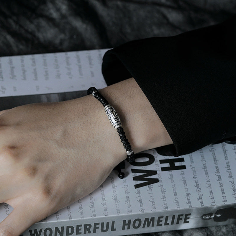 LAOTLON 999 Sterling Silver Nine-Eye Dzi Bead Pattern Blessing Rope Bracelet
