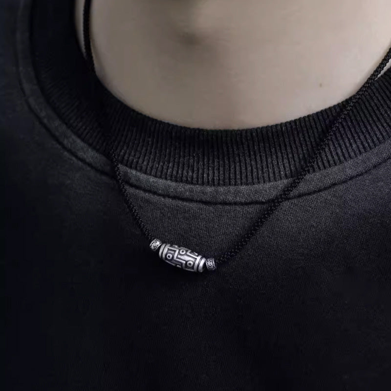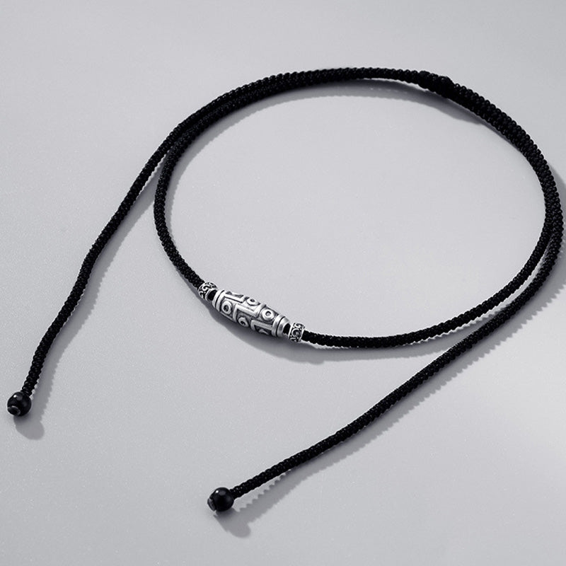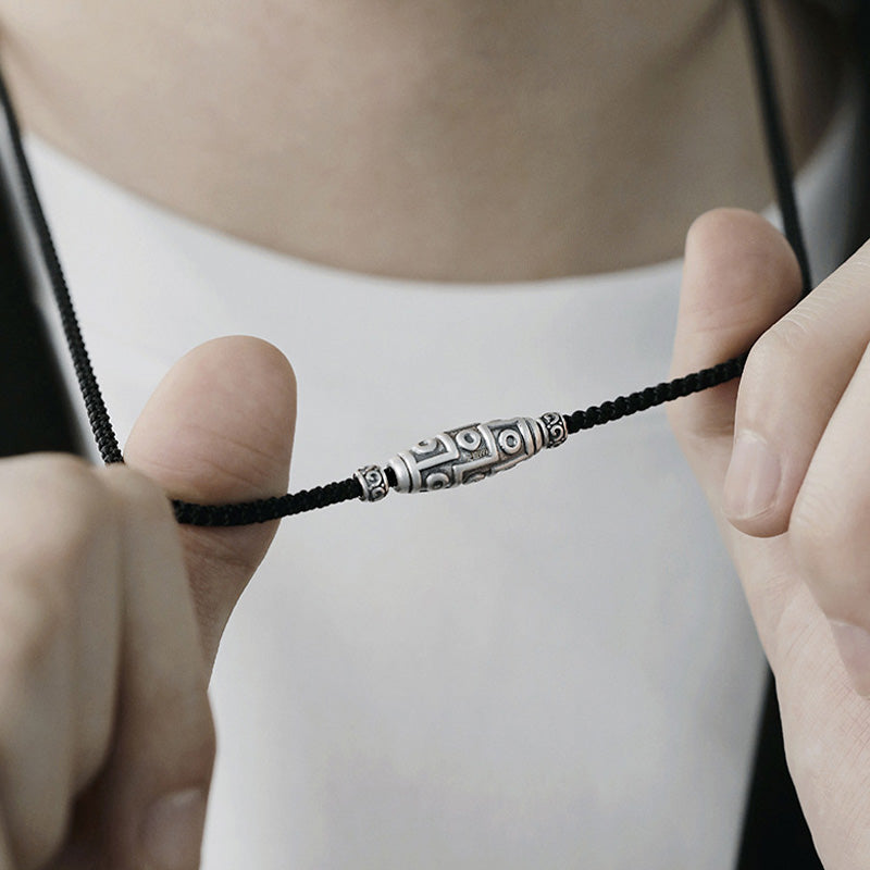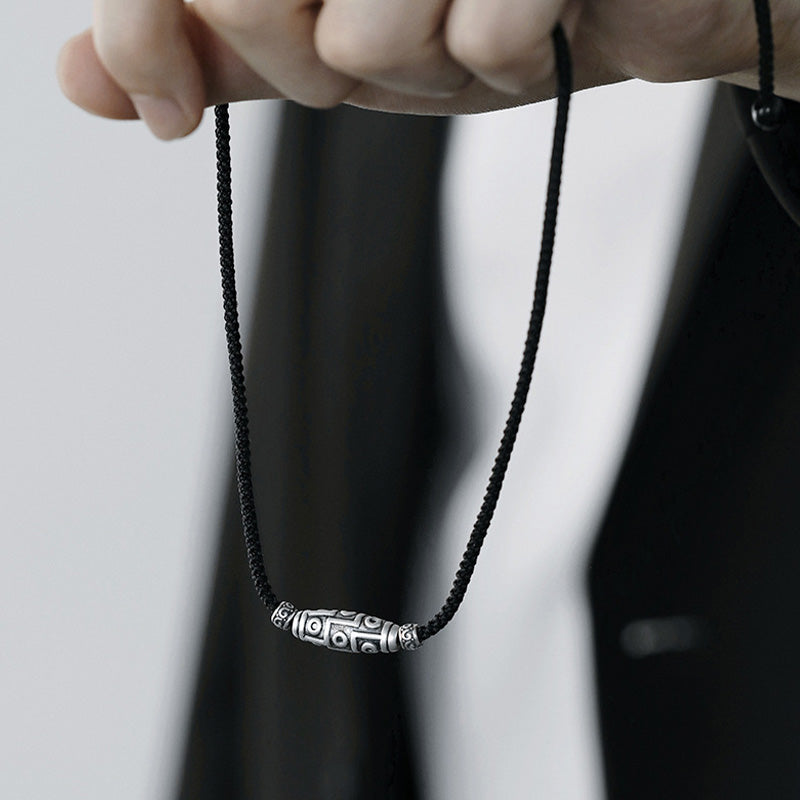 LAOTLON 999 Sterling Silver Nine-Eye Dzi Bead Pattern Protection Rope Necklace Pendant