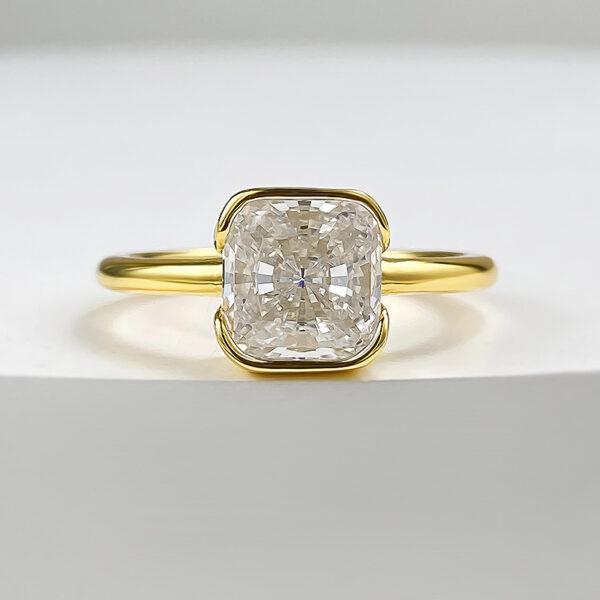 Discover the perfect combination of modern design and classic elegance with the half bezel set ring. While featuring an exquisite Asscher cut ring, this ring offers a sophisticated and clean look. The Asscher cut engagement ring is renowned for its brilliant facets and square shape, making it an exceptional choice for those who appreciate unique beauty.