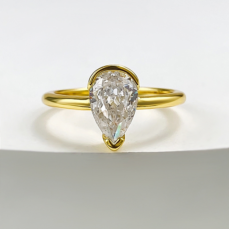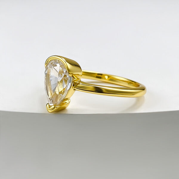 The half bezel setting ring secures the stone with a sleek and minimalistic design, ensuring both protection and style. Its open gallery ring design adds an airy, delicate touch, allowing the light to illuminate the stone from every angle.