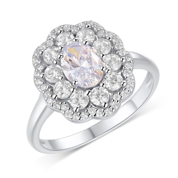 LAOTLON Glamorous Moissanites Halo Flower Ring – Sparkling Cocktail Ring for Women