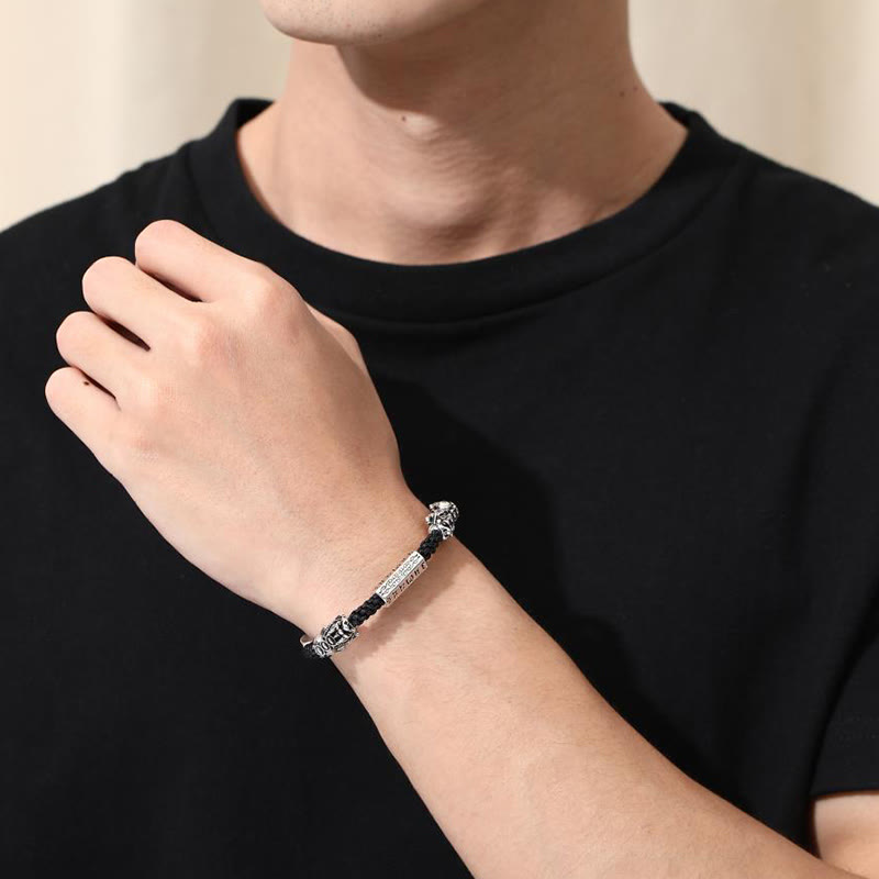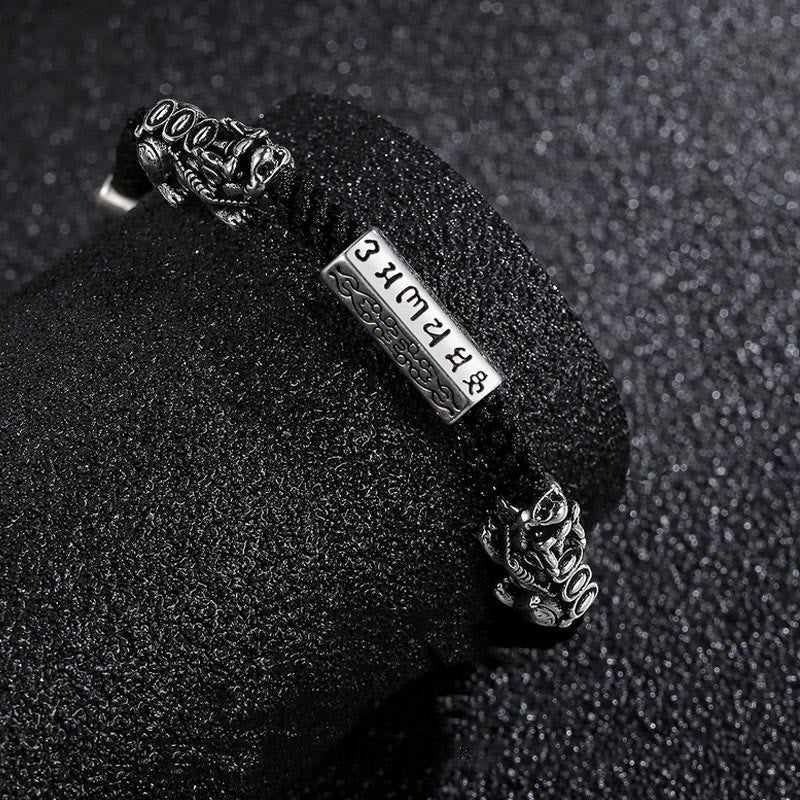 LAOTLON Double PiXiu Feng Shui Copper Coin Om Mani Padme Hum String Bracelet