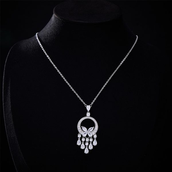 Design Highlights: Featuring a dynamic “ring + butterfly” motif, the emerald-cut stone boasts fullness and brilliance. Diamond pavé outlines its delicate contours, while the tassel-style pendant sways gracefully with movement, exuding an air of elegance.