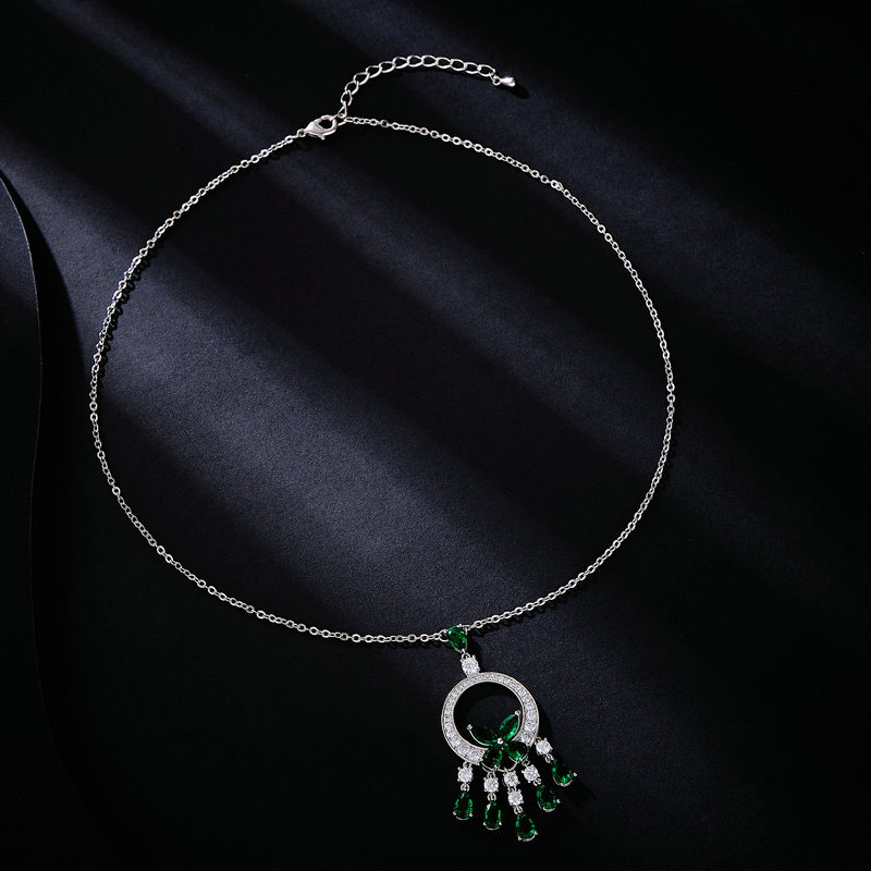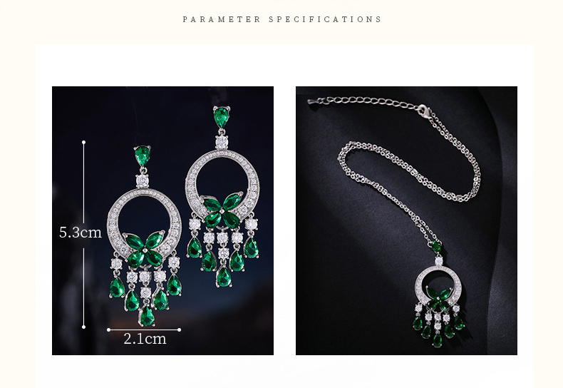 This jewelry set features a dazzling cubic zirconia center stone paired with sparkling white diamonds, creating a light luxury yet eye-catching look—perfect for banquets and important occasions.
