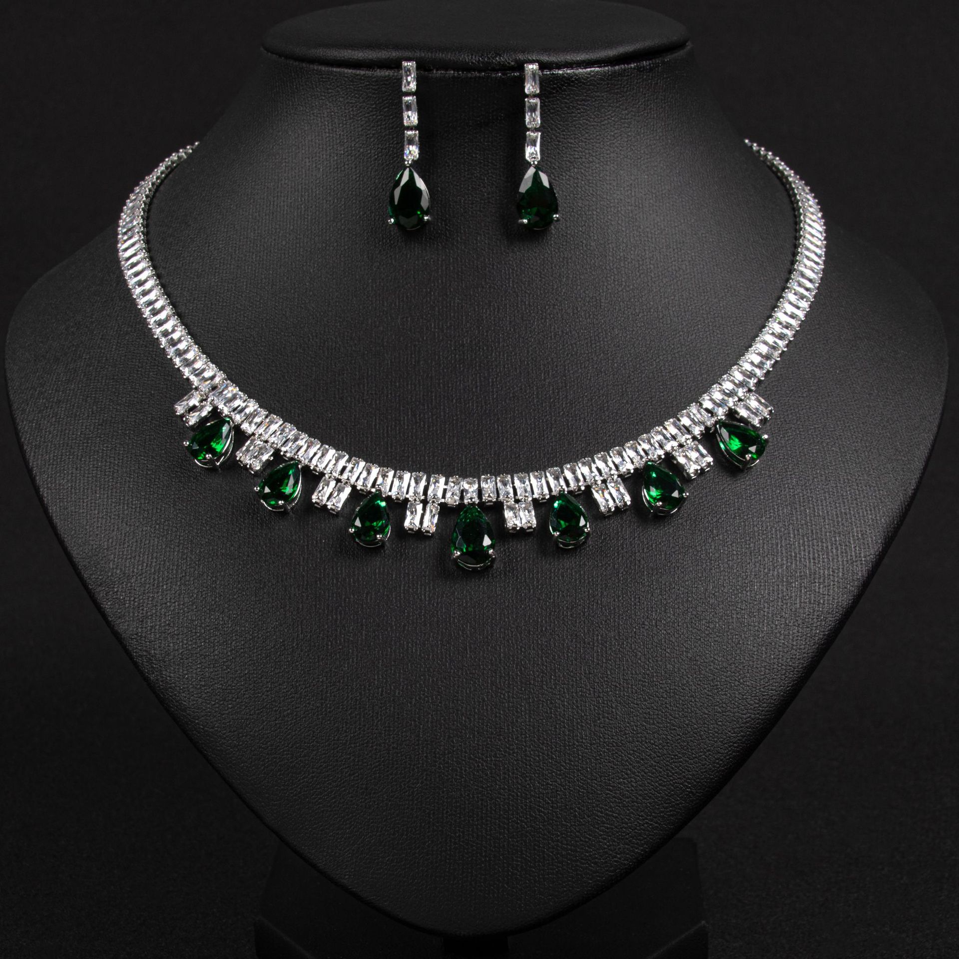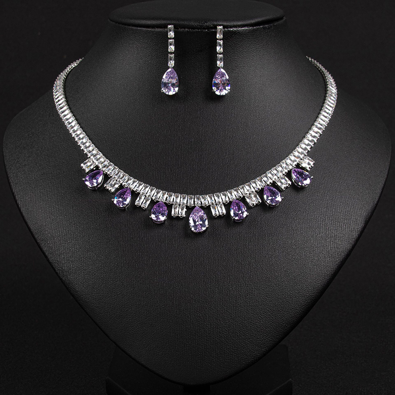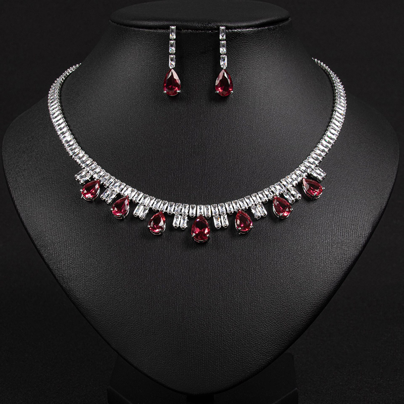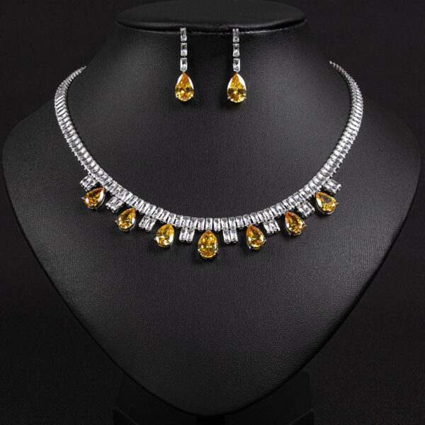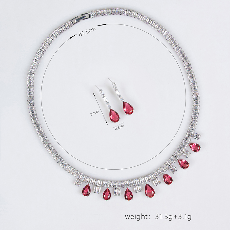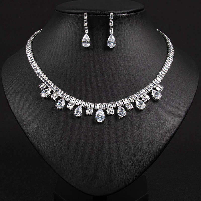 This wedding jewelry set features a classic teardrop-shaped zircon as its centerpiece, perfectly embodying a vintage-inspired elegance that serves as the crowning touch for any bridal look: