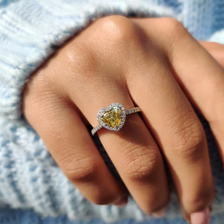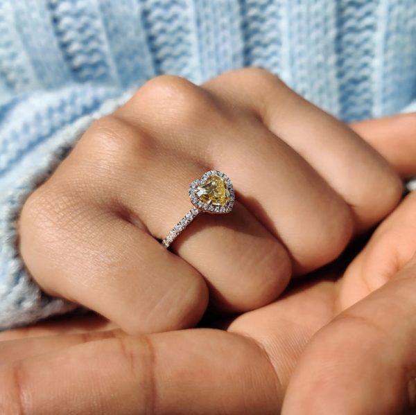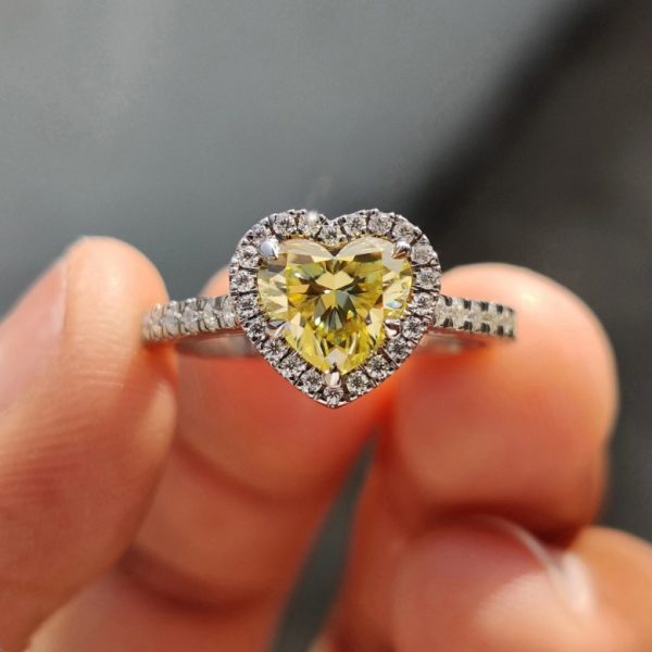 Be the first to review “LAOTLON Halo Set Canary Yellow Heart Cut Engagement Ring”