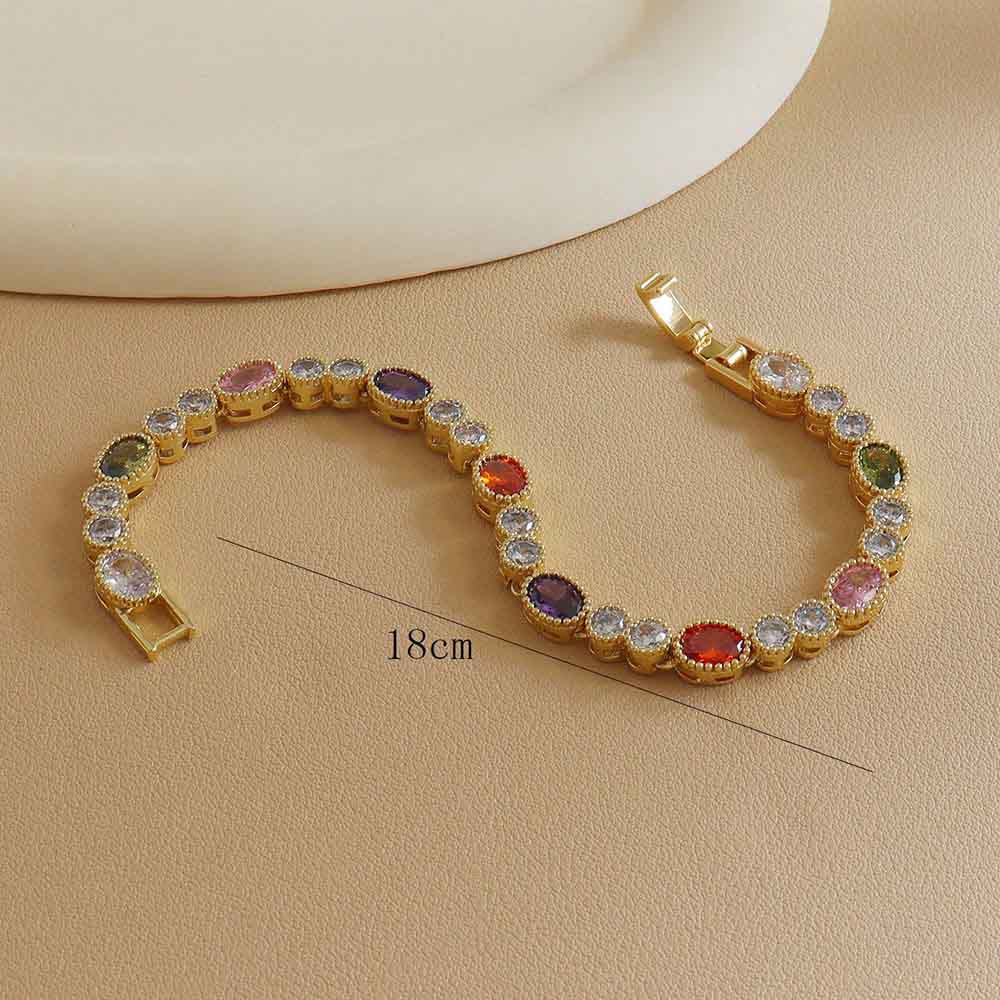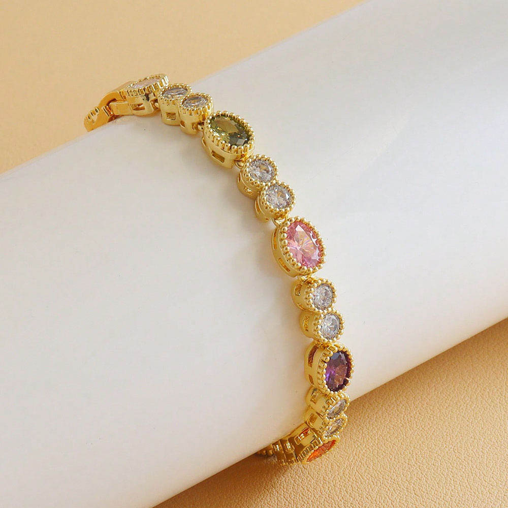 LAOTLON 18K Gold-Plated Colorful Fashion Oval Zircon Bracelet