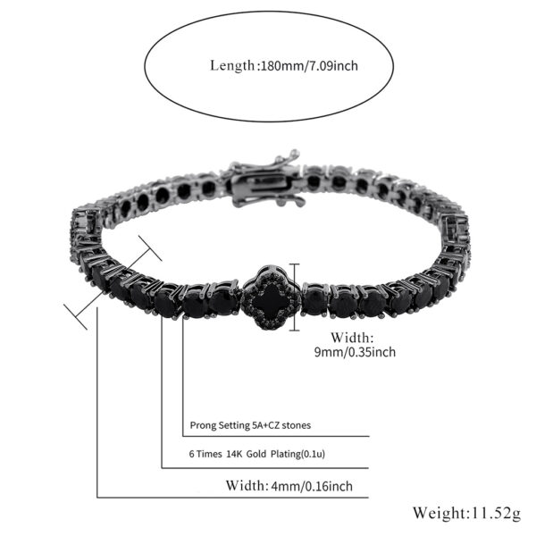Be the first to review “LAOTLON 4mm Iced Out Four Leaf Clover Tennis Bracelet in Black Gold”