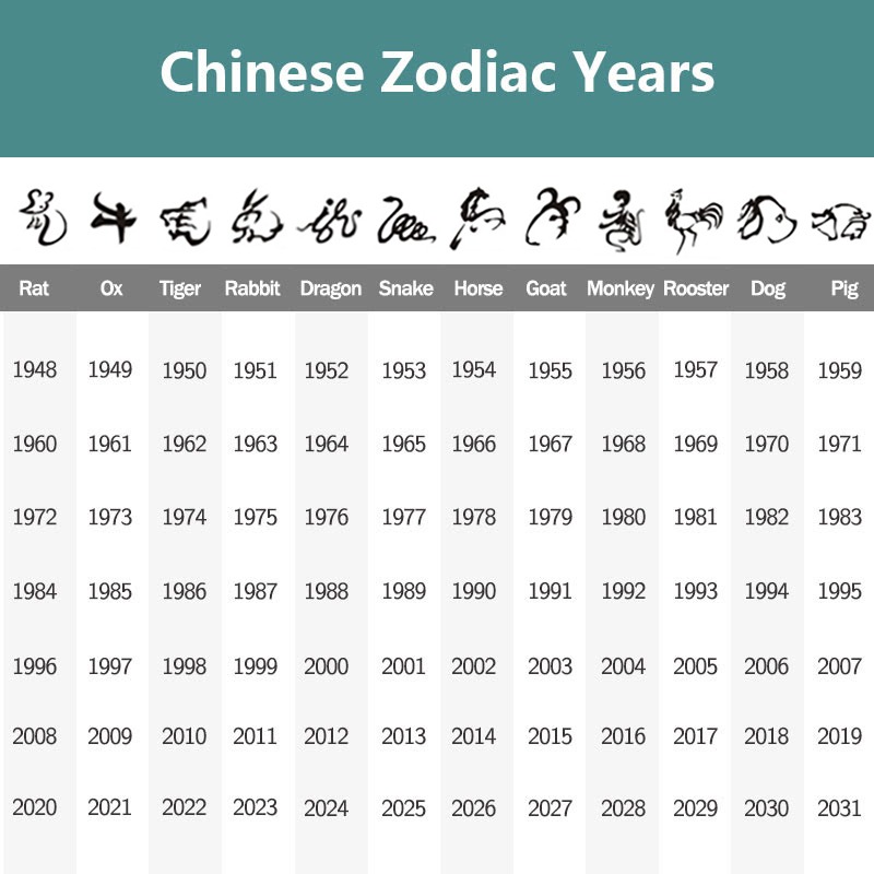The 12 zodiac animals are shown below in order, with recent years for you to directly find out your own birth year and animal sign.