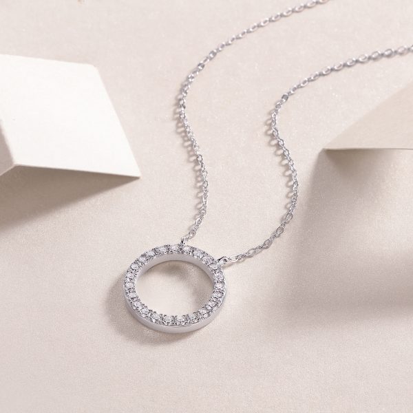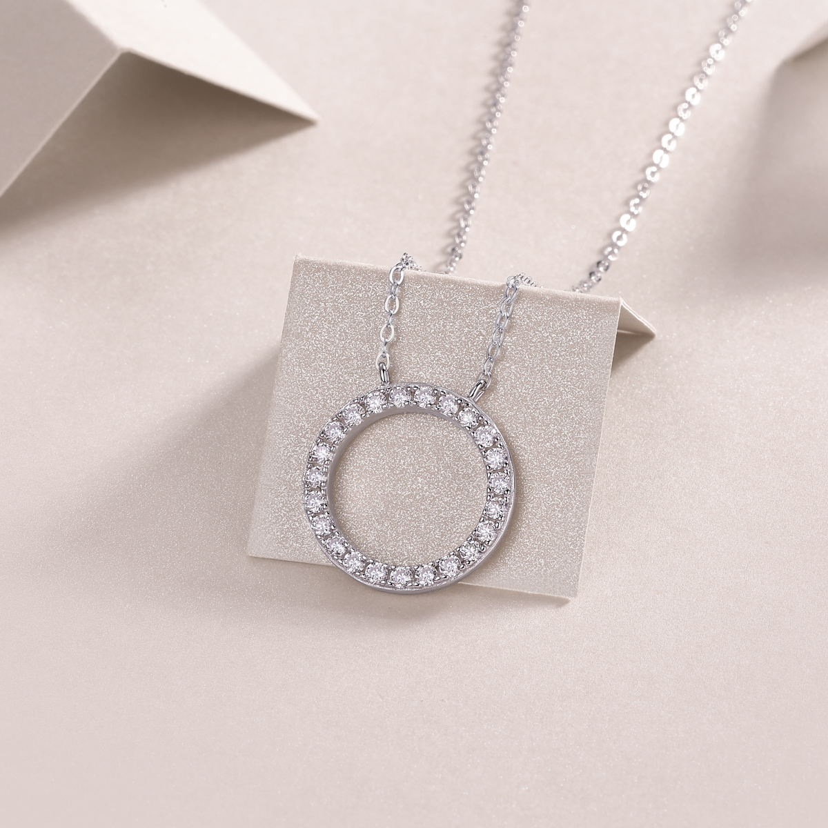 Laotlon Circle Moissanites Necklace Light Luxury Style S925 Silver Collarbone Chain