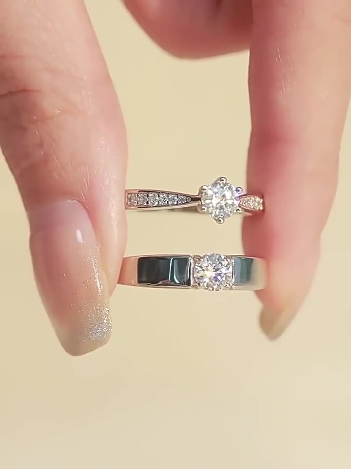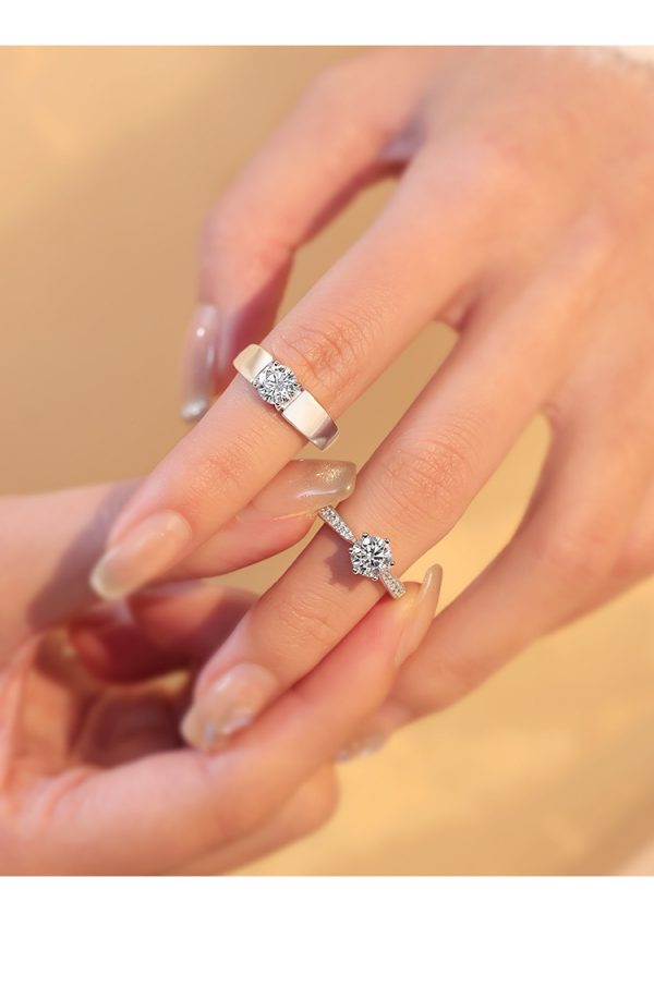 These exquisite couples’ rings, each featuring brilliant Moissanite stones, are the ultimate symbol of your eternal love. Her ring shines with a central Moissanite and delicate accents, while his ring boasts a sleek design with its own sparkling Moissanite. Crafted from premium metal for lasting luster, they’re perfect for engagements or weddings. A timeless token of your unique bond, these rings will make your special moment unforgettable.