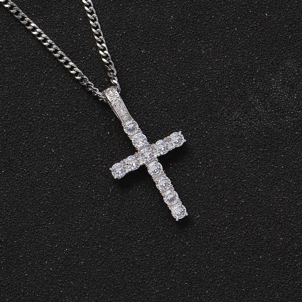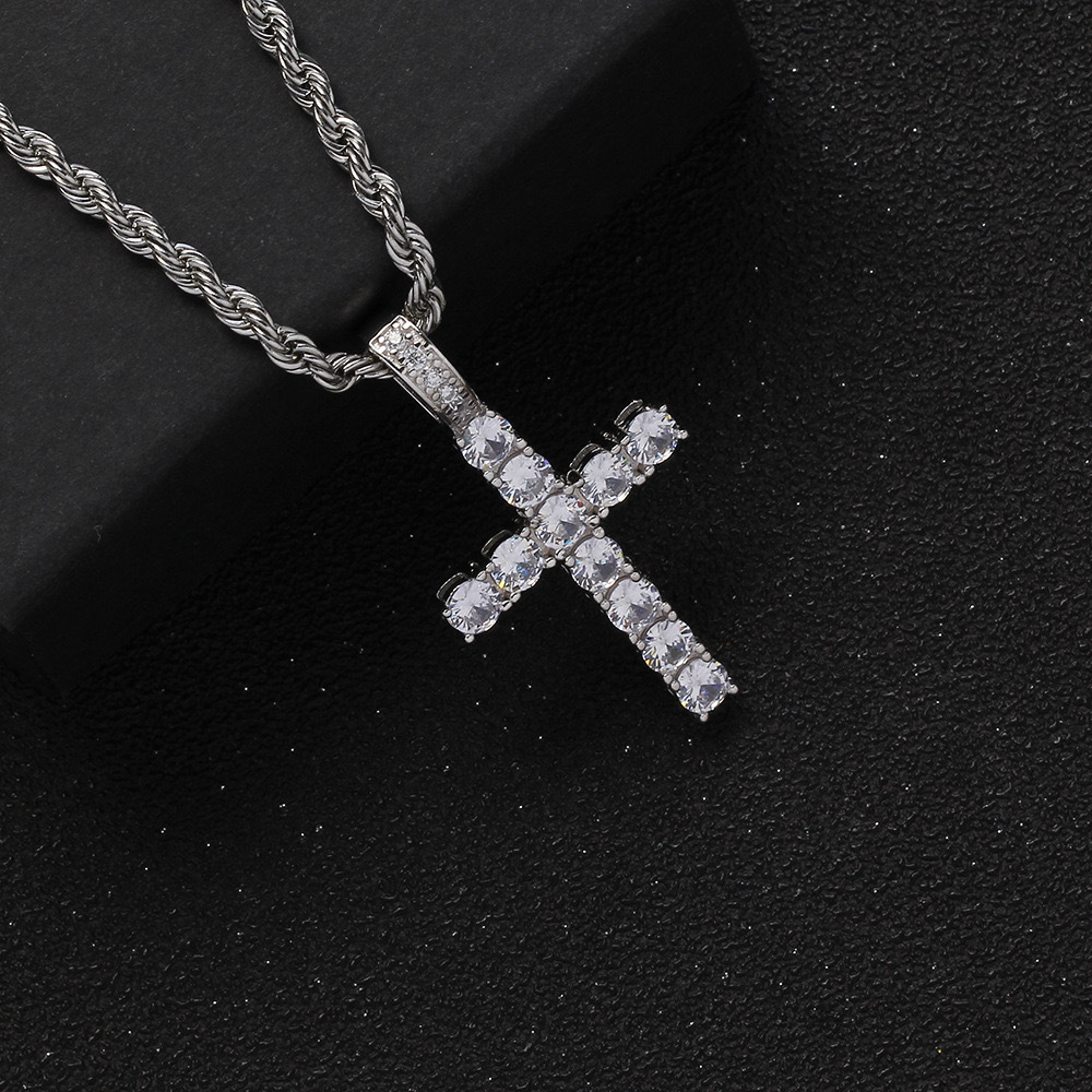 The Cuban link chain, iconic in its bold texture, meets a dazzling cross pendant—this isn’t just a necklace, it’s a fusion of legacy and luxury. Each link is a nod to streetwise history.
