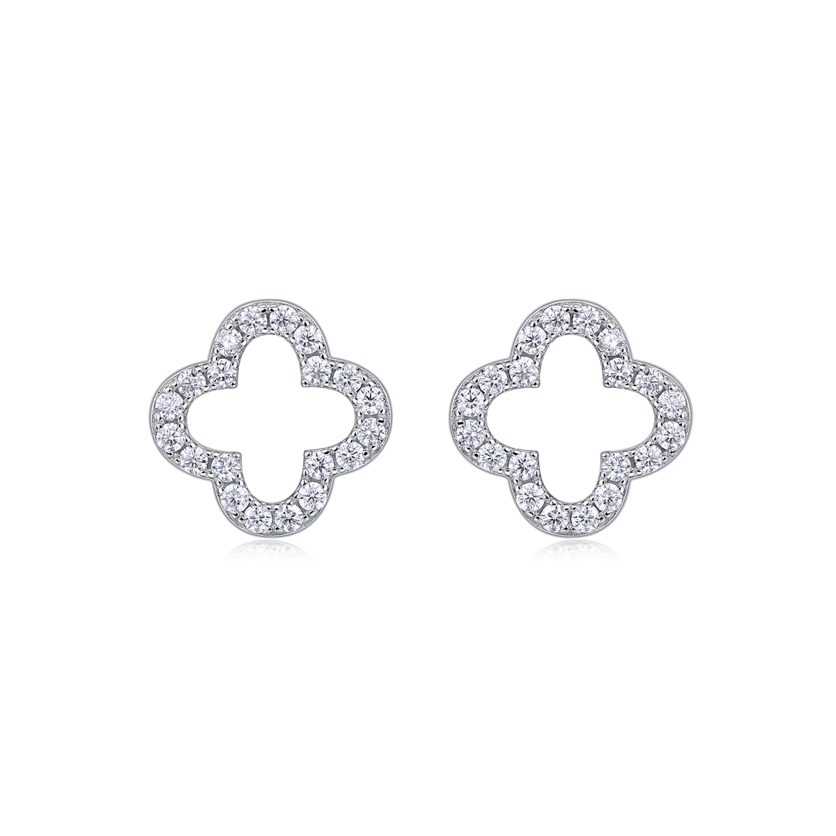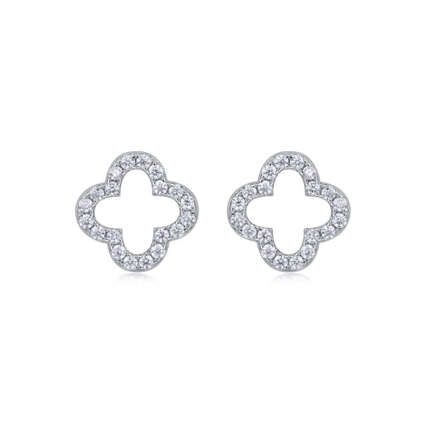 Laotlon Elegant Moissanite Diamonds Clover-Shaped Hollow Earrings