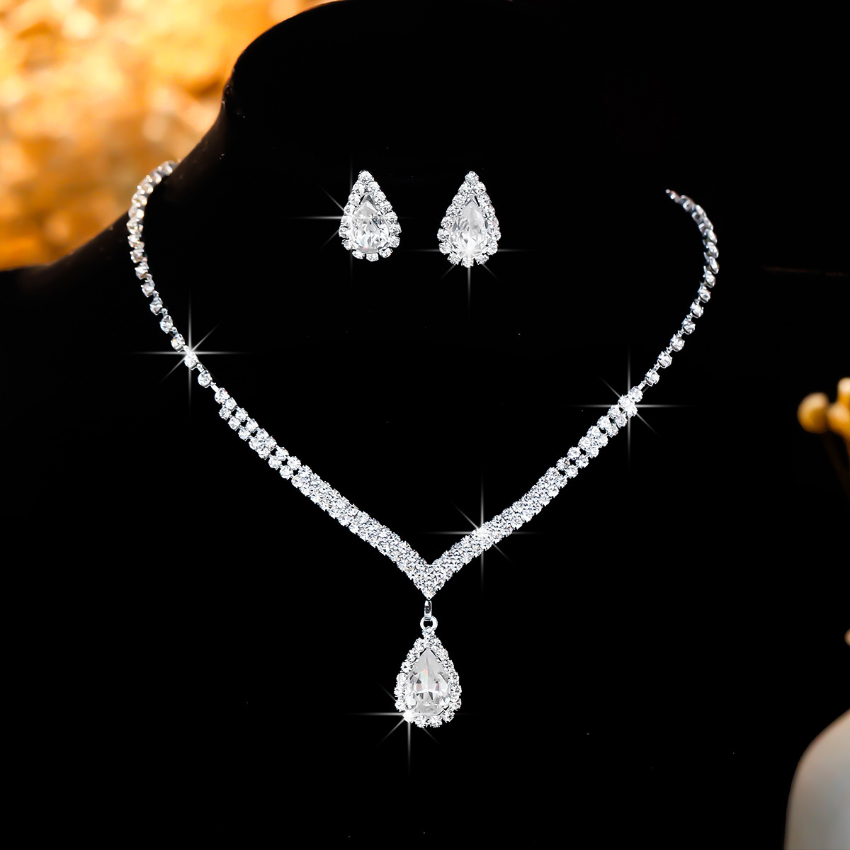 LAOTLON European and American fashion diamond-studded, rhinestone and zircon necklace and earrings