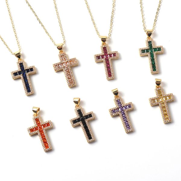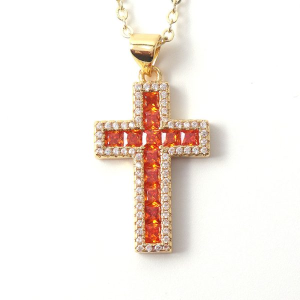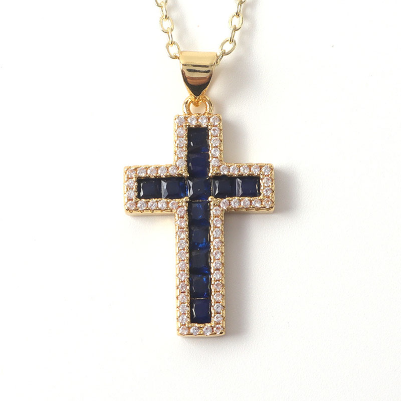 These eye-catching cross pendants seamlessly blend bold style with spiritual symbolism, adding a striking accent to any ensemble. Each cross is encrusted with dazzling high-quality cubic zirconia stones in stunning hues (Navy Blue, Champagne Gold, Ruby Red, Emerald Green, Flame Orange, Jet Black, Royal Purple, Sunlight Yellow), reflecting brilliant sparkle from every angle.