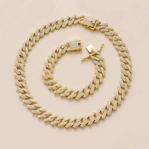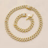 This is a luxurious necklace, inlaid with countless sparkling cubic zirconia stones. The chain adopts Cuban chain design, which is wide and flat, interlaced with each other. The clasp is also very decorative, inlaid with the same sparkling gemstones, adding a gorgeous temperament to the whole.