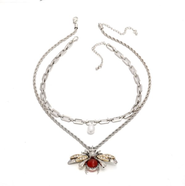 Be the first to review “Laotlon Gold Bee Pearl Pendant Double Layered Chain Jewelry”