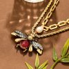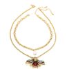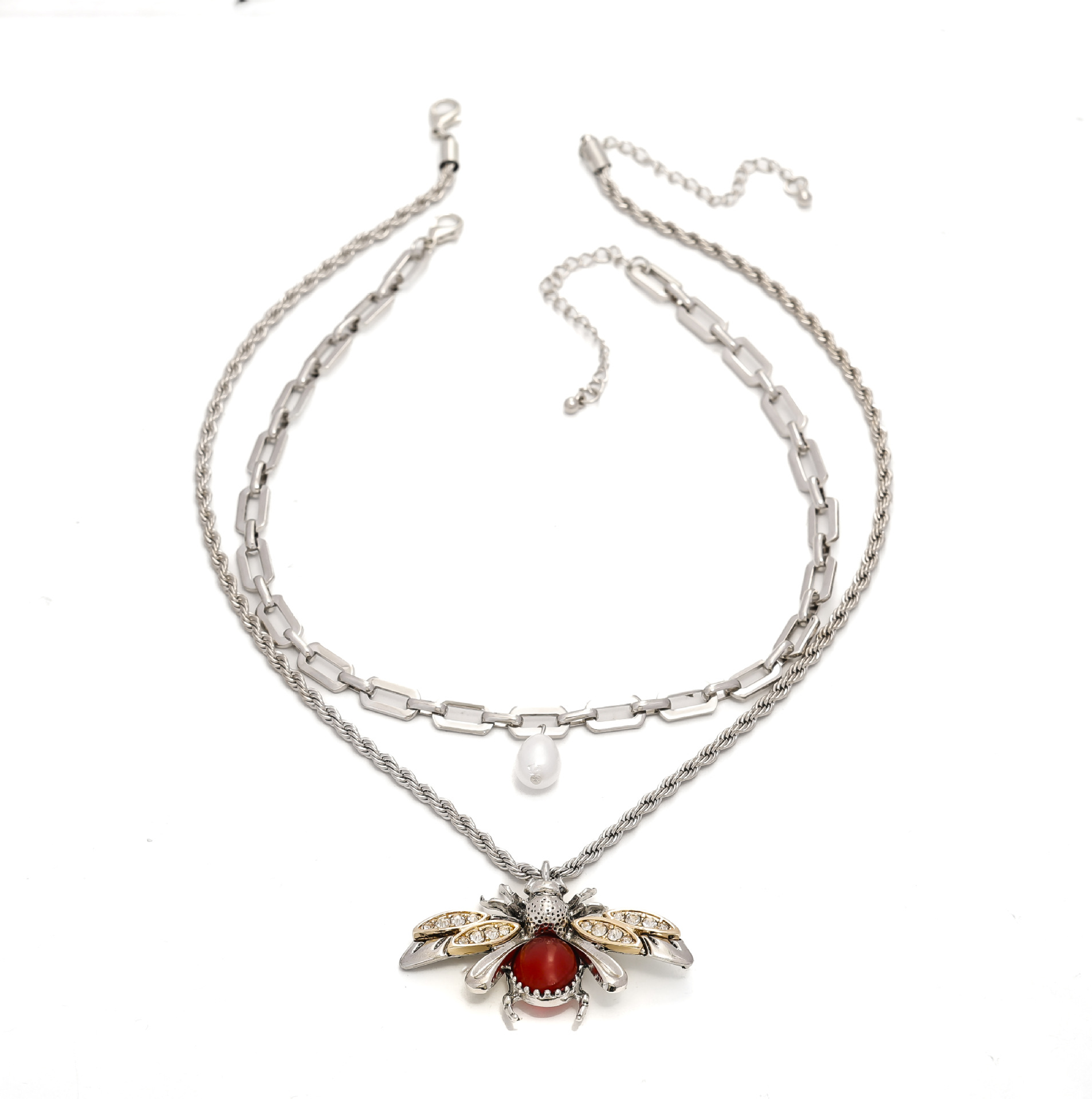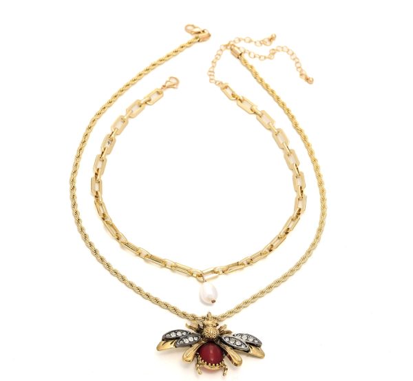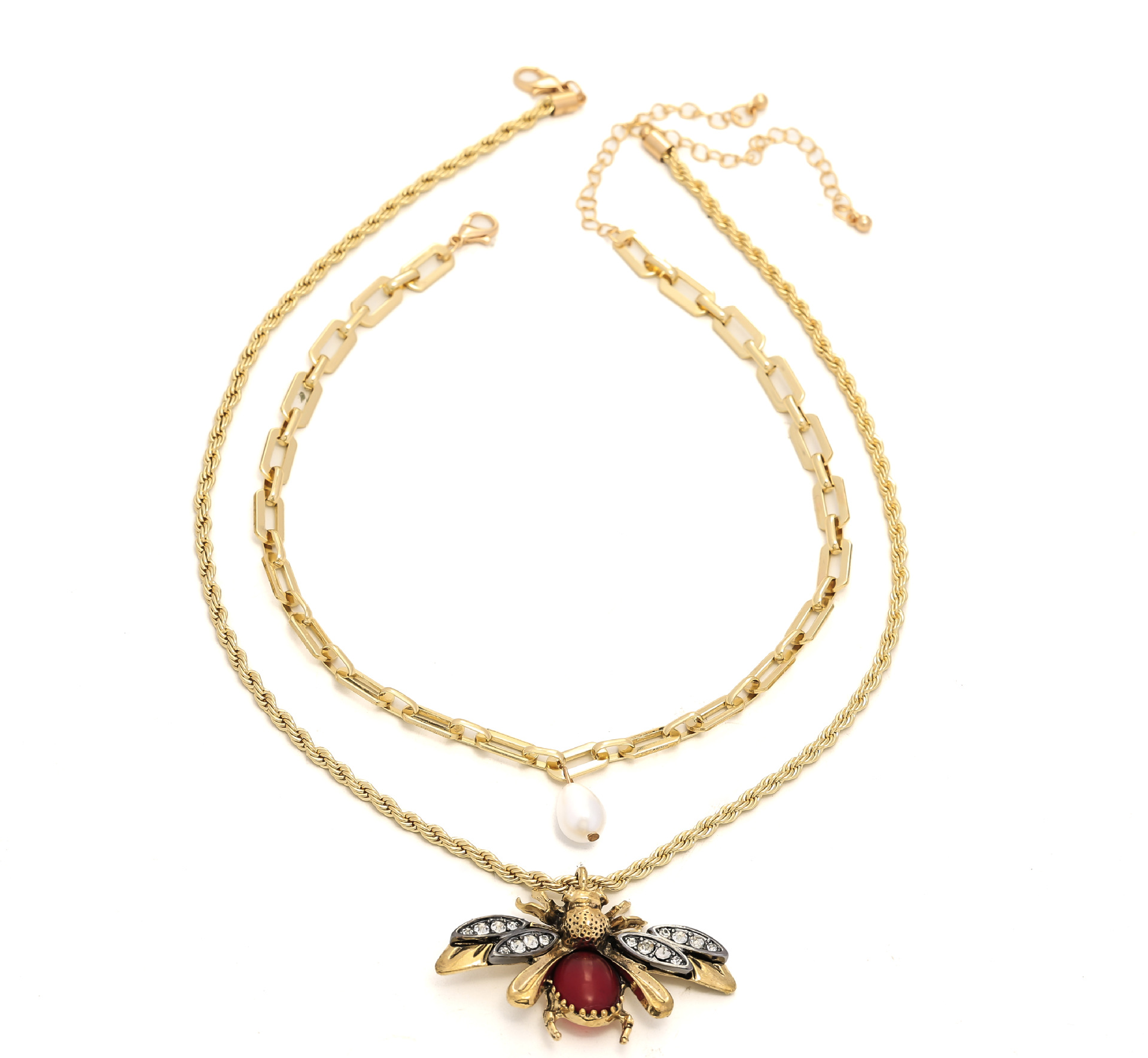 Laotlon Gold Bee Pearl Pendant Double Layered Chain Jewelry