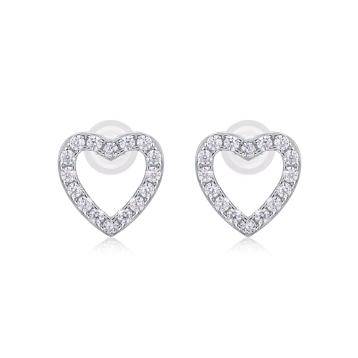 Laotlon Heart Earrings Moissanites Diamond Small Dainty Stud Heart Sterling Silver Earrings