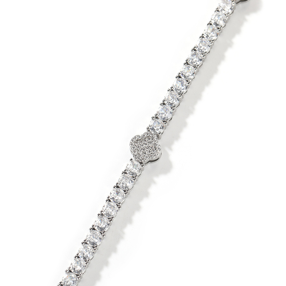 LAOTLON Iced 8.5mm Four Leaf Clover Tennis Bracelet