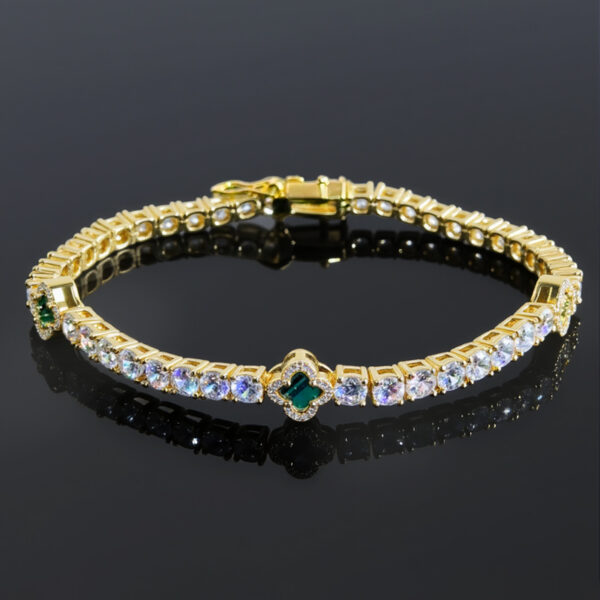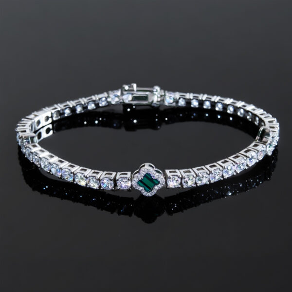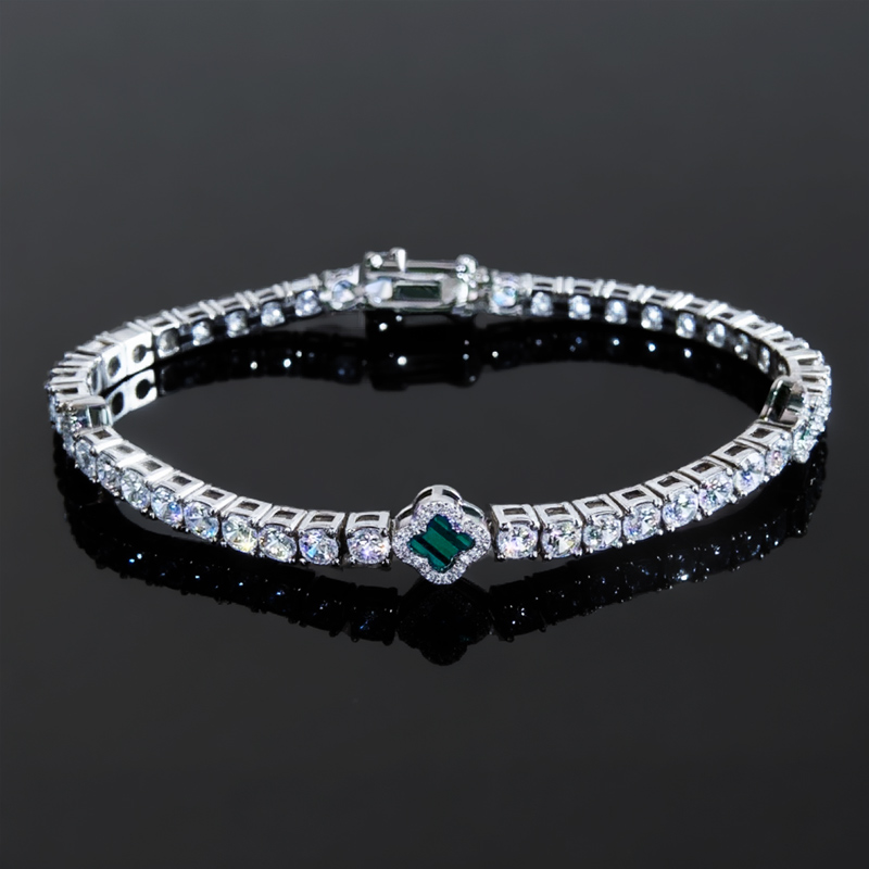 • This tennis bracelet features a delicate green 、black clover design, adorned with sparkling diamonds. The combination of the vibrant green、Black and dazzling diamonds makes it a charming and eye-catching piece. The high-quality craftsmanship ensures its durability and elegance, suitable for various occasions, adding a touch of luxury and grace to the wrist.