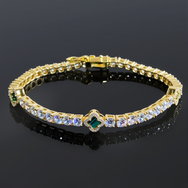 LAOTLON Iced Out Green, Black Four Leaf Clover Tennis Bracelet