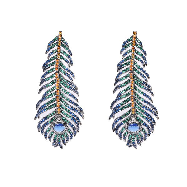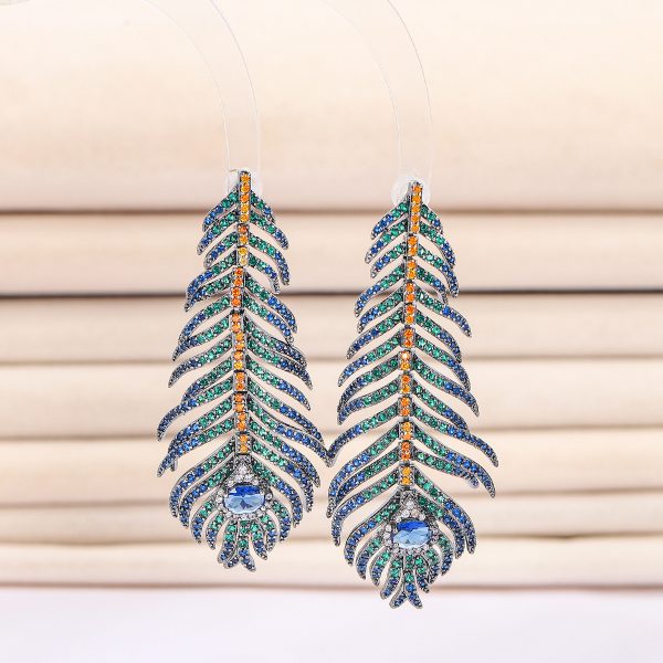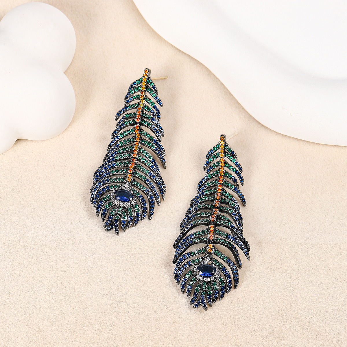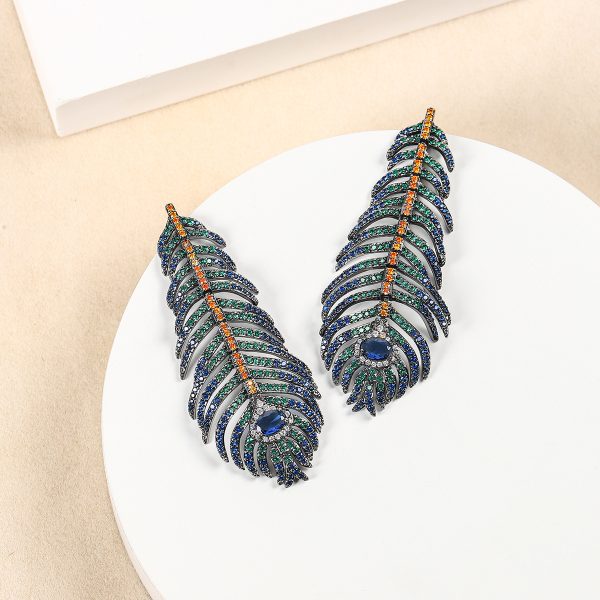Each feather-shaped element is inlaid with vibrant zirconia stones, radiating the dazzling brilliance of peacock feathers. The central blue zirconia stone serves as the crowning touch, elevating the design to a sophisticated yet understated luxury. Wear it and feel feathers brushing your ears with every step, adding an air of elegance and refinement to any ensemble, and elevating ideal for enhancing various outfits, from casual to formal, making it a great fashion jewelry choice.💕
