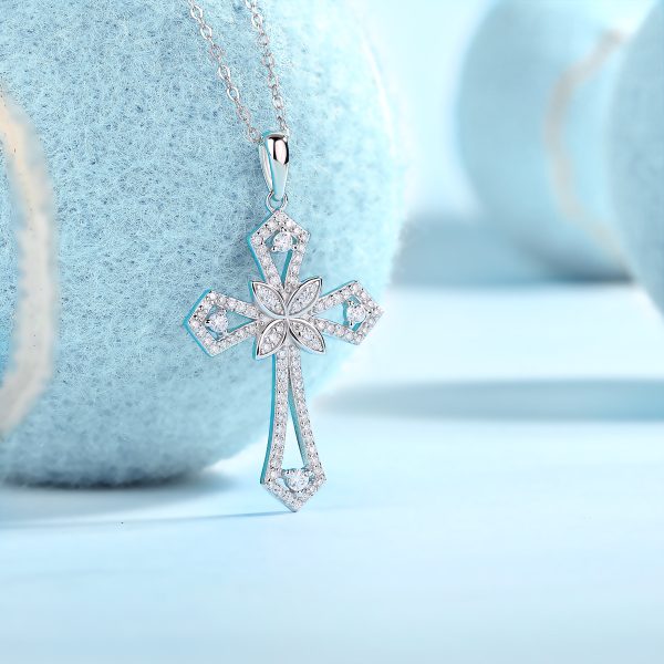 • Moissanite Cross Necklace: Our Moissanite Cross Necklace has beautiful lines, making the necklace simple and elegant. The Moissanite Cross represents eternal loyalty, faith, friendship and love and is the perfect symbol of your eternal devotion. Moissanite is very popular with women. It’s an intense, bright white that shimmers with incredible brilliance.