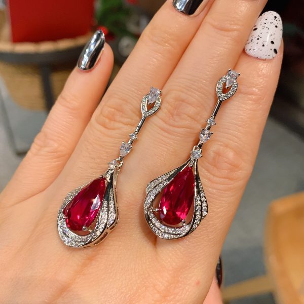 The red ruby earrings are a true eye – catcher. The deep red color of the ruby symbolizes passion and love.