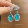 The centerpiece of the earrings features a teardrop – shaped Paraiba tourmaline, whose vivid blue – green hue shimmers like a tropical ocean under the sunlight, exuding a unique charm.