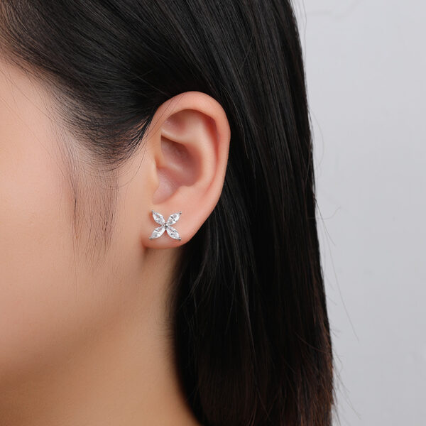 Be the first to review “Laotlon Flower Stud Marquise Cut Diamond Earrings In White Gold”