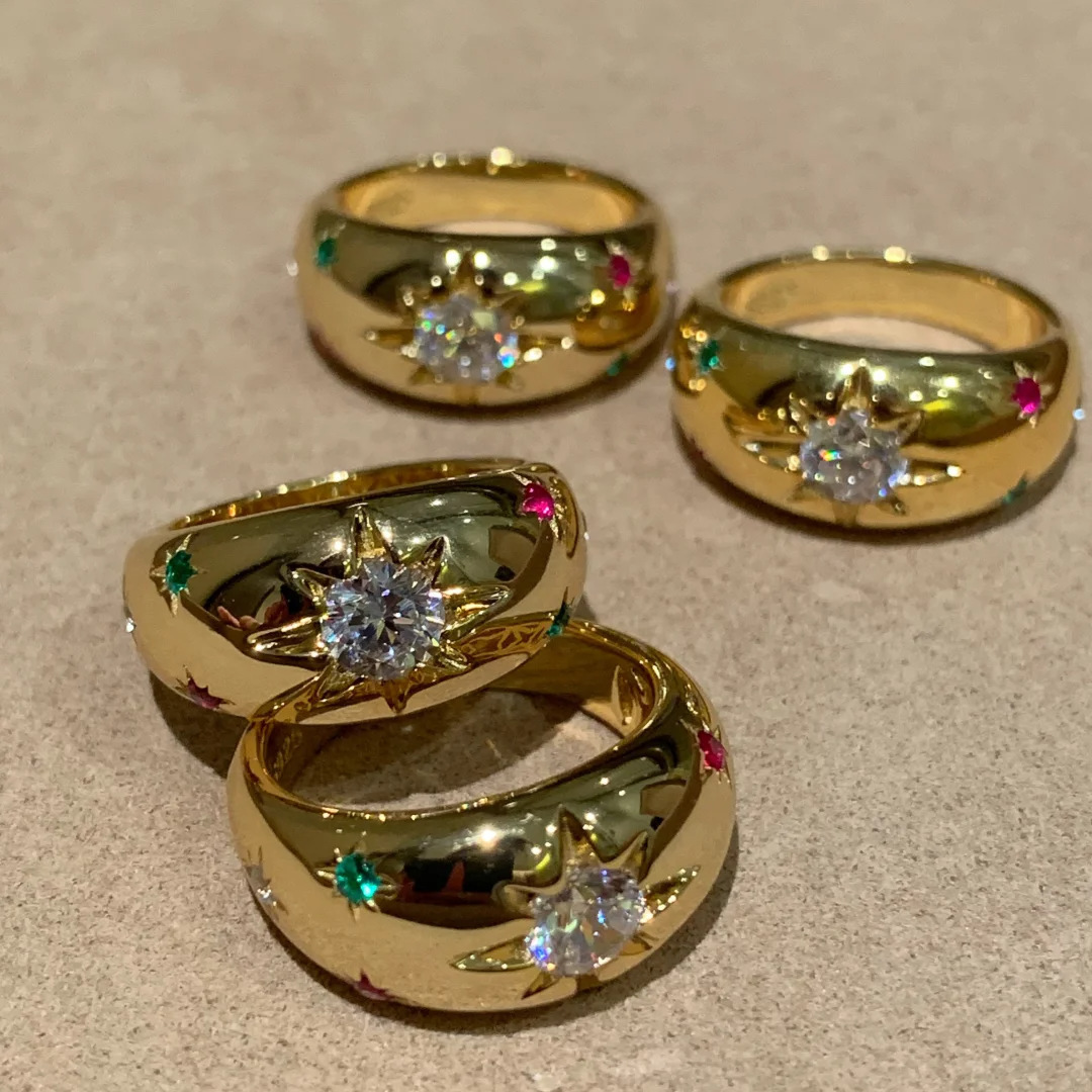 Laotlon Vintage Dopamine Octagram Diamond-Inlaid Ring