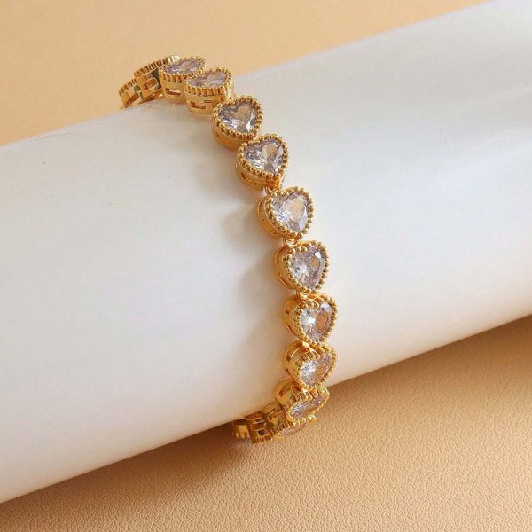 LAOTLON18K Gold-Plated Fashion Heart-Shaped Zircon Bracelet
