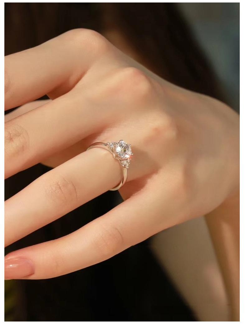 - Center stones: 4 round moissanite stones; 1 round moissanite stone, 6.5×6.5 mm (2 carats)
