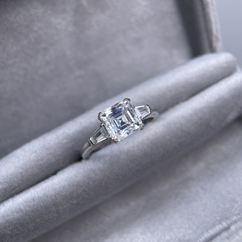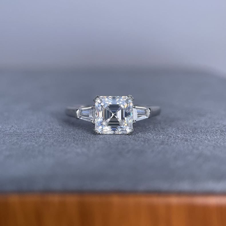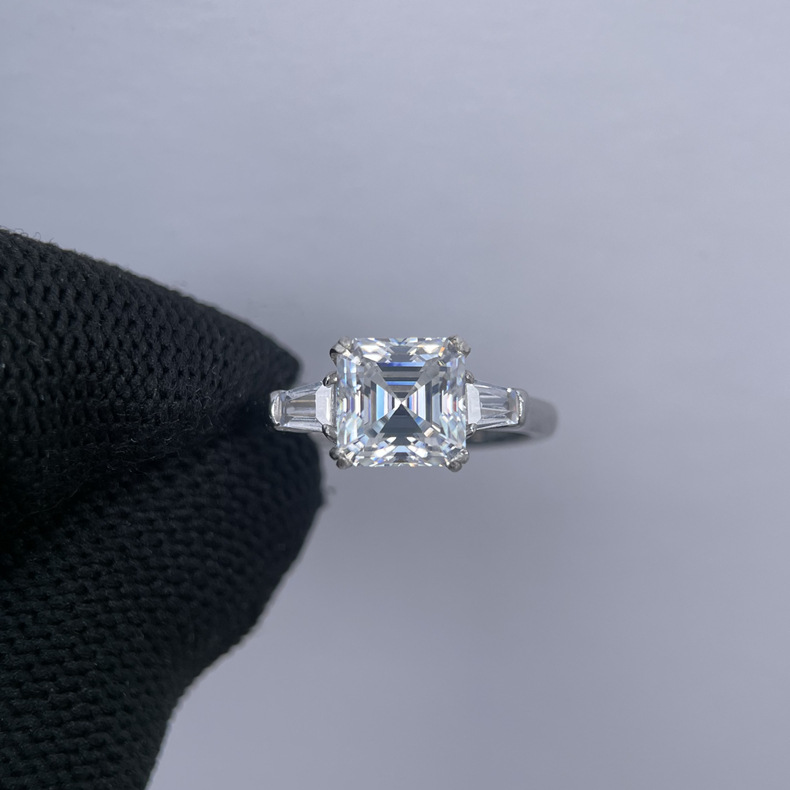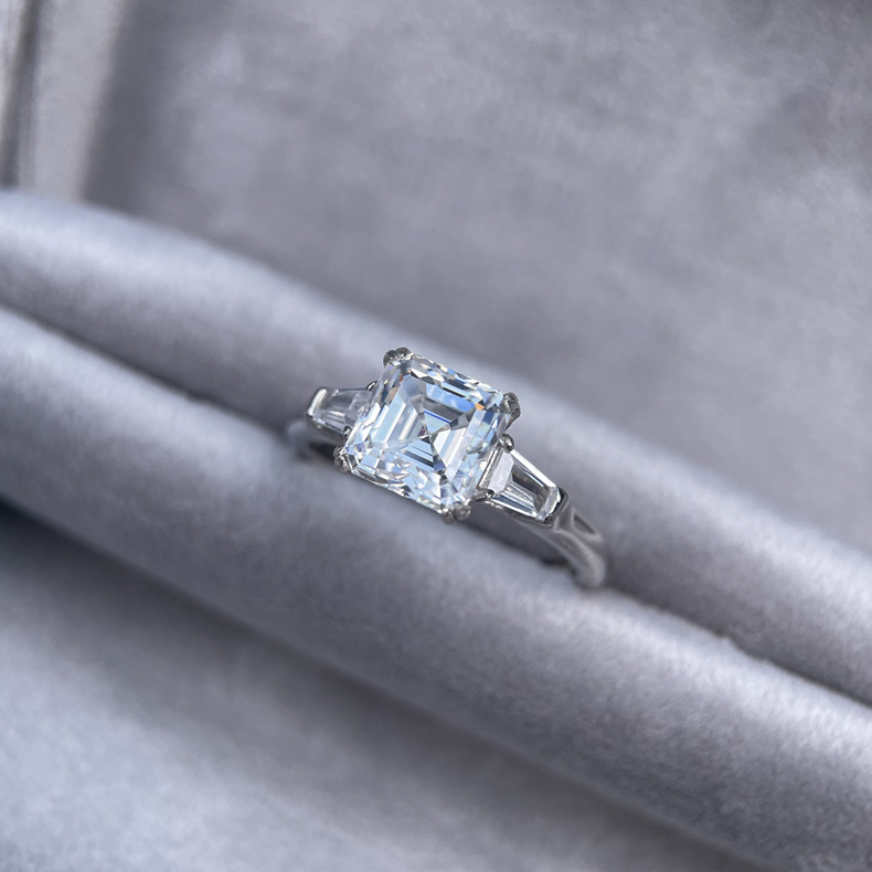 LAOTLON 2-Carat Moissanite Ring With Asscher and Baguette