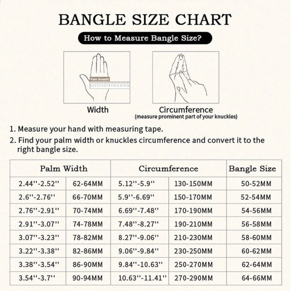 • You can use some lubricant, detergent, or soap to lubricate your hand to make it easier when wearing the bangle.