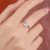 The amazing, distinctly formed diamond in the Pear Shaped Moissanite Ring exudes elegance and charm. Designed in premium white gold, this solitaire ring features a prong setting that safely displays the Moissanite. Moreover, the modern, elegant design of the tapered shank engagement ring guarantees comfort and flair.