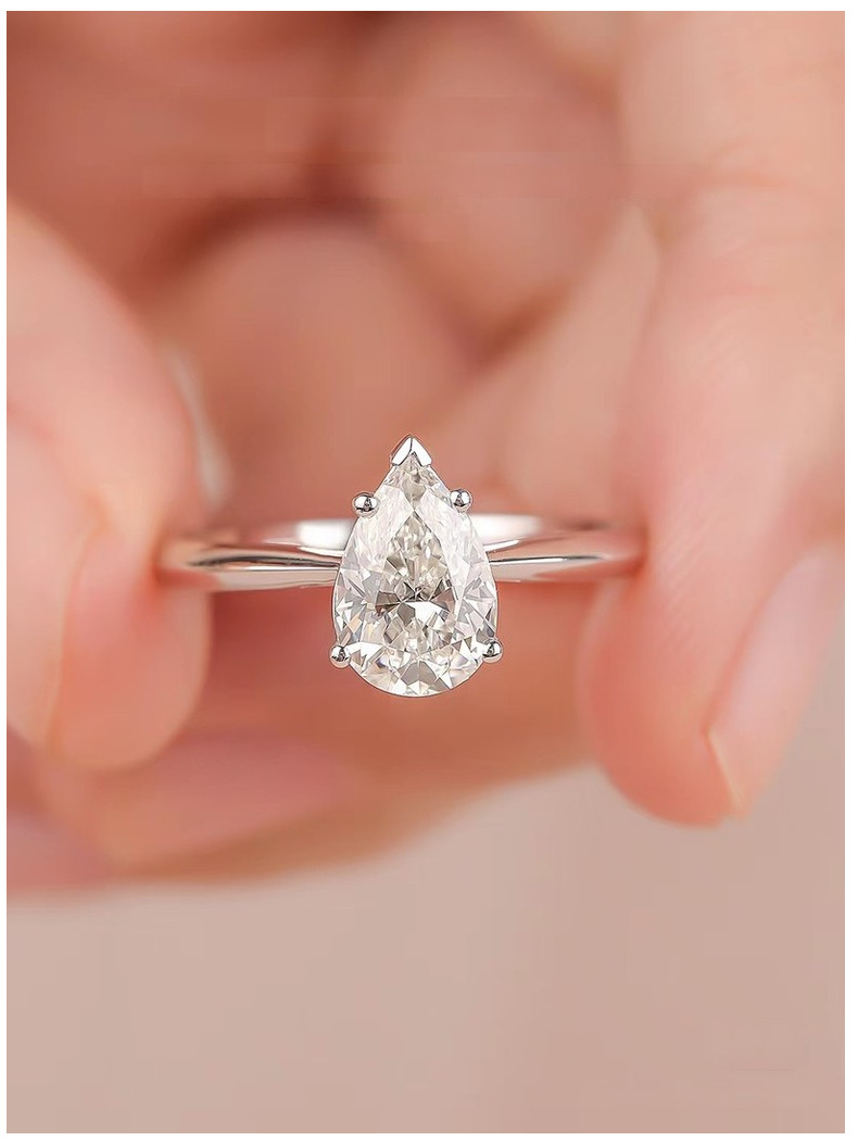 LAOTLON Pear Shaped Diamond Ring In Solitaire Style