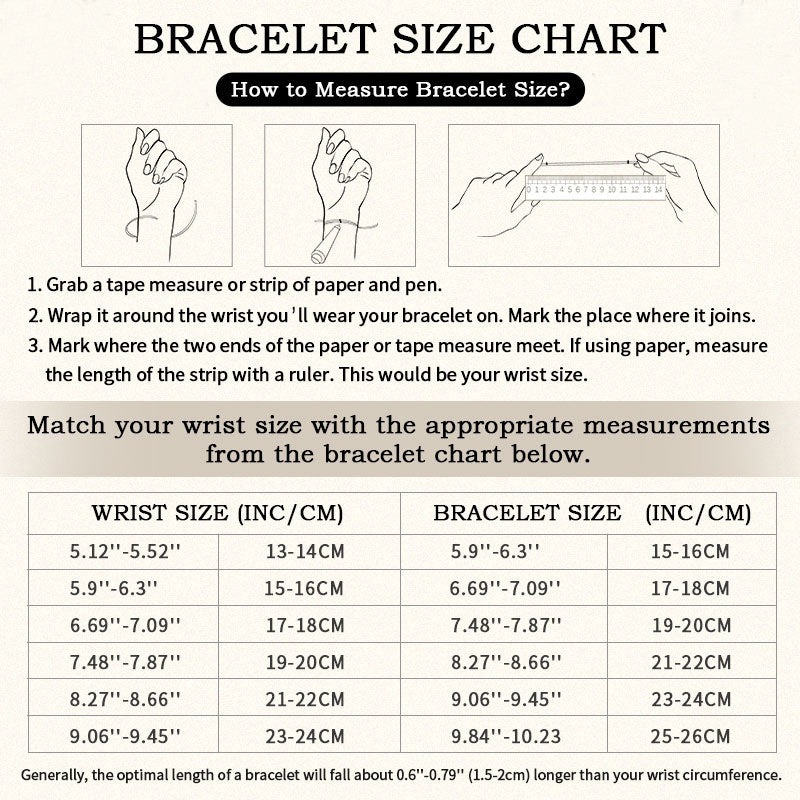 1. You can refer to our size chart to choose bracelet size. The size chart is suitable for most people.