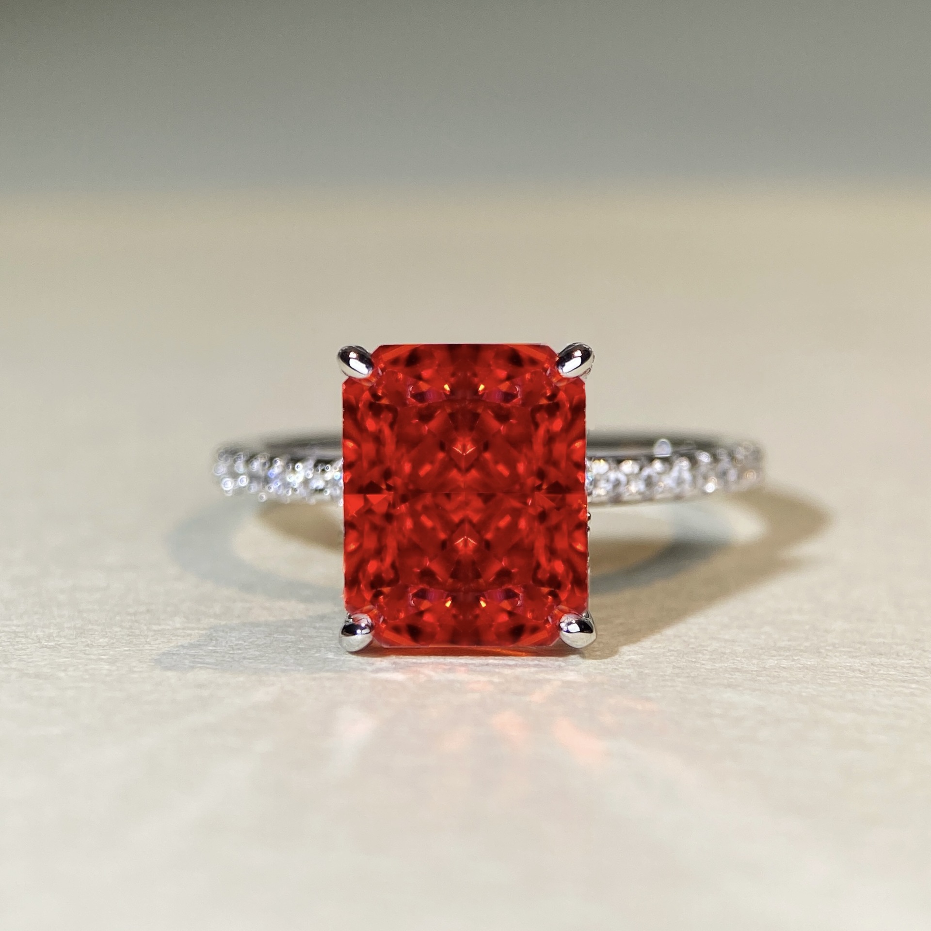 • 【Exquisite Center Stone】 Features a luxurious 4-carat radiant cut diamond as the center stone. With exceptional brilliance and fire comparable to a diamond, it’s set with fine craftsmanship to maximize its sparkle.