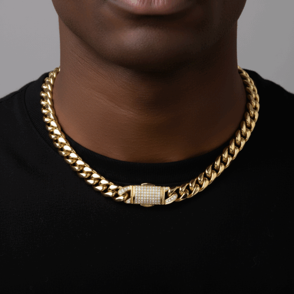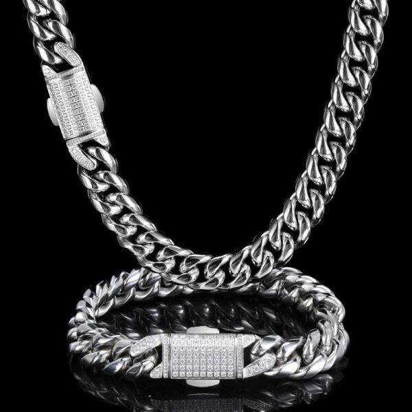 Laotlon Hip-Hop 12mm Artificial Mini Gemstone Spring Snap Stainless Steel Cuban Chain